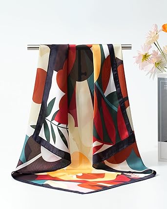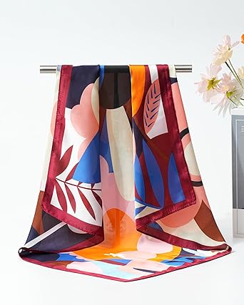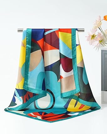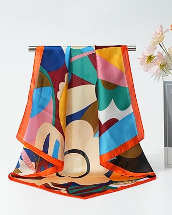Step into a world of bold expression and effortless elegance with this 4-pack satin scarf set. Designed in vibrant hues of orange, teal, navy, pink, mustard, and white, each scarf features a unique combination of abstract geometry, botanical outlines, and modern color blocking. Whether you're dressing for a city stroll or a beach getaway, these scarves offer endless styling possibilities.