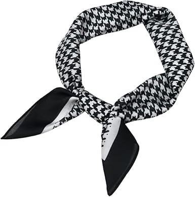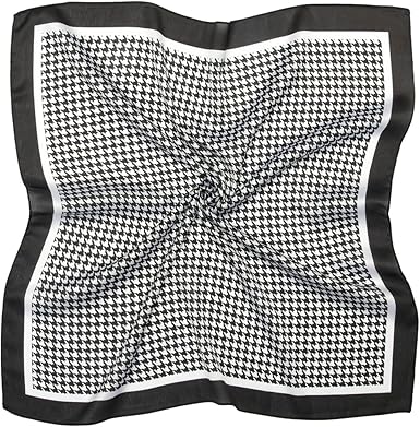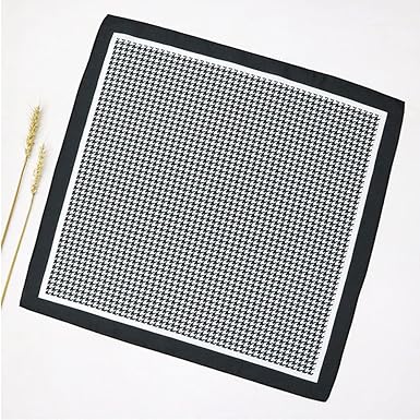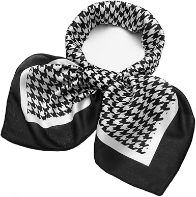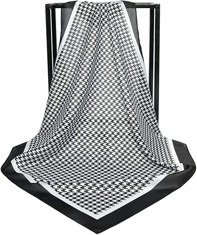 Classic Black & White Houndstooth Square Scarf – Elegant Lightweight Silk-Like Accessory (Approx. 70×70cm)