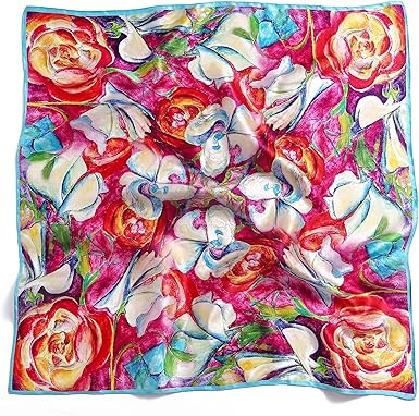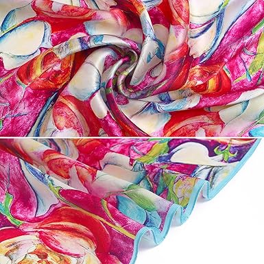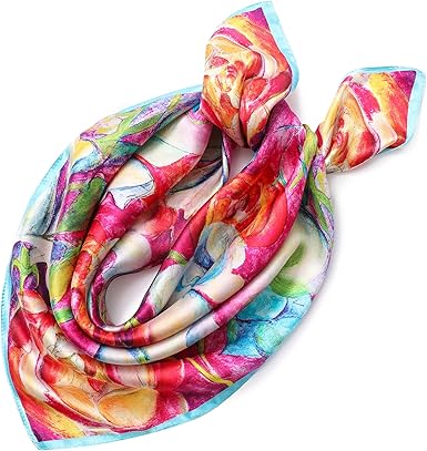 Elevate your outfit with this stunning abstract satin scarf, inspired by fluid art and the dynamic rhythm of brushstrokes. Bursting with vibrant hues—red, pink, orange, blue, and green—this piece mimics the beauty of a painted canvas, making it a wearable artwork that speaks volumes.