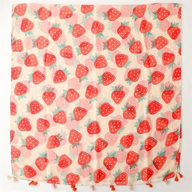 Infused with a sense of playful charm, this scarf features vibrant red strawberries scattered across a soft pastel background, giving it a refreshing, feminine touch. Whether paired with a white tee, a floral dress, or your go-to summer outfit, this scarf adds a fun pop of color and makes a cheerful style statement.