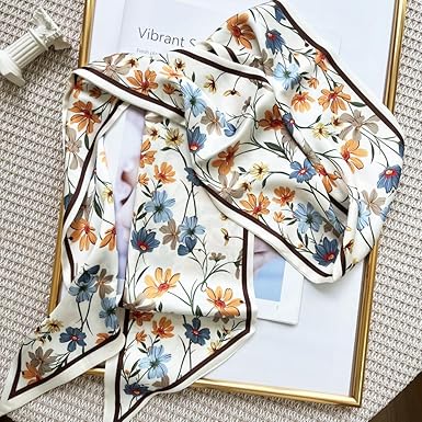 Crafted from high-quality faux silk, the scarf feels soft and luxurious against the skin. The fabric drapes beautifully, offering both comfort and style in all seasons. With neat stitched edges and a manageable size of approx. 27.5" × 27.5", it’s ideal for multiple uses — from neckwear to bag decor to wrist ties and more.